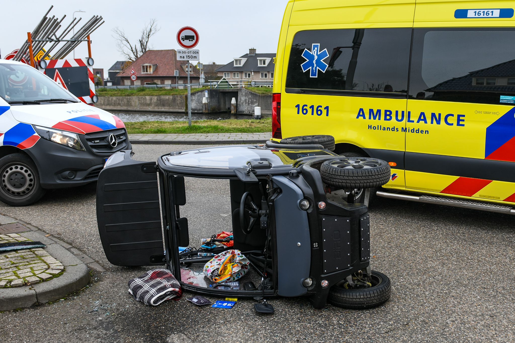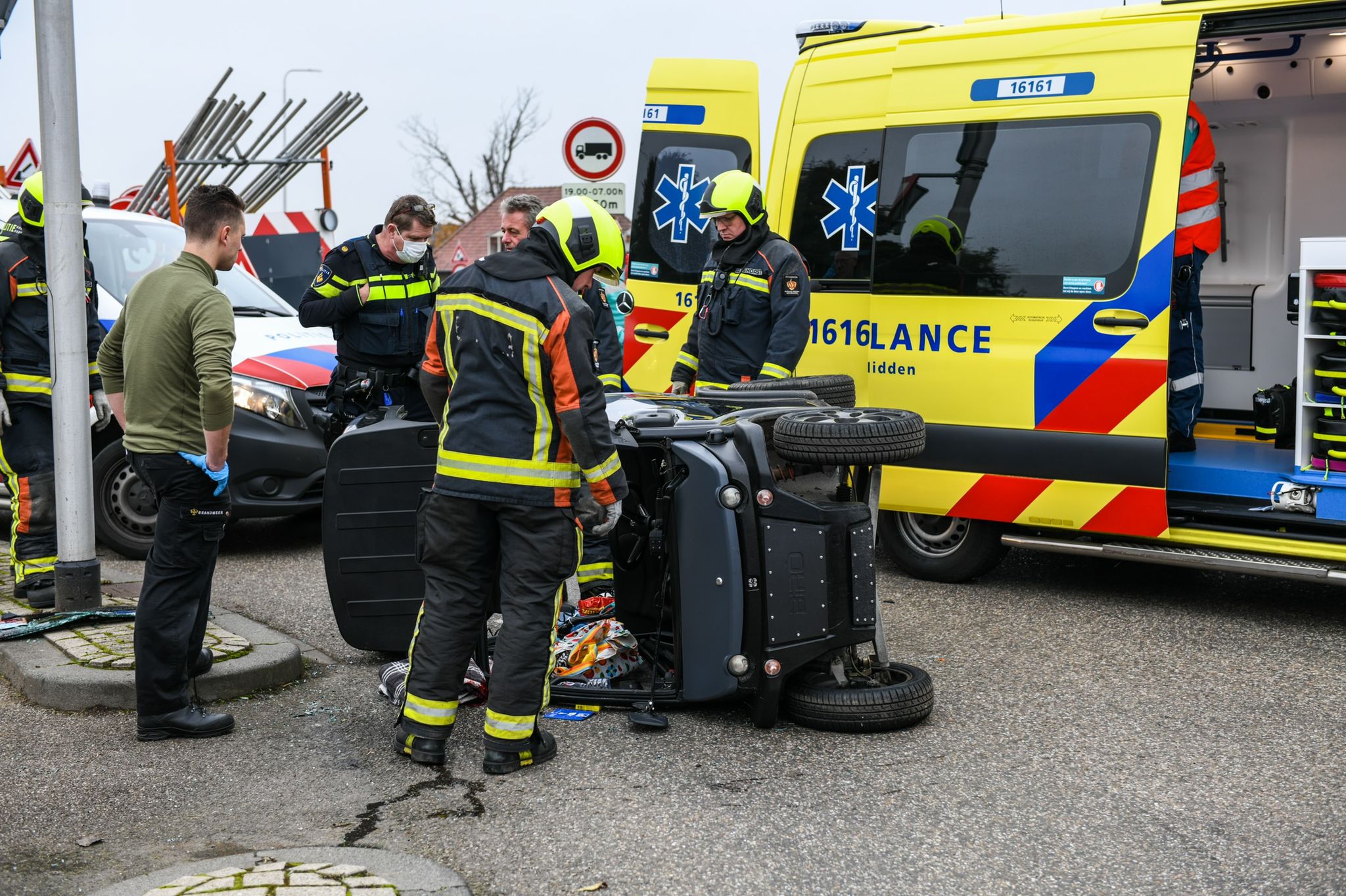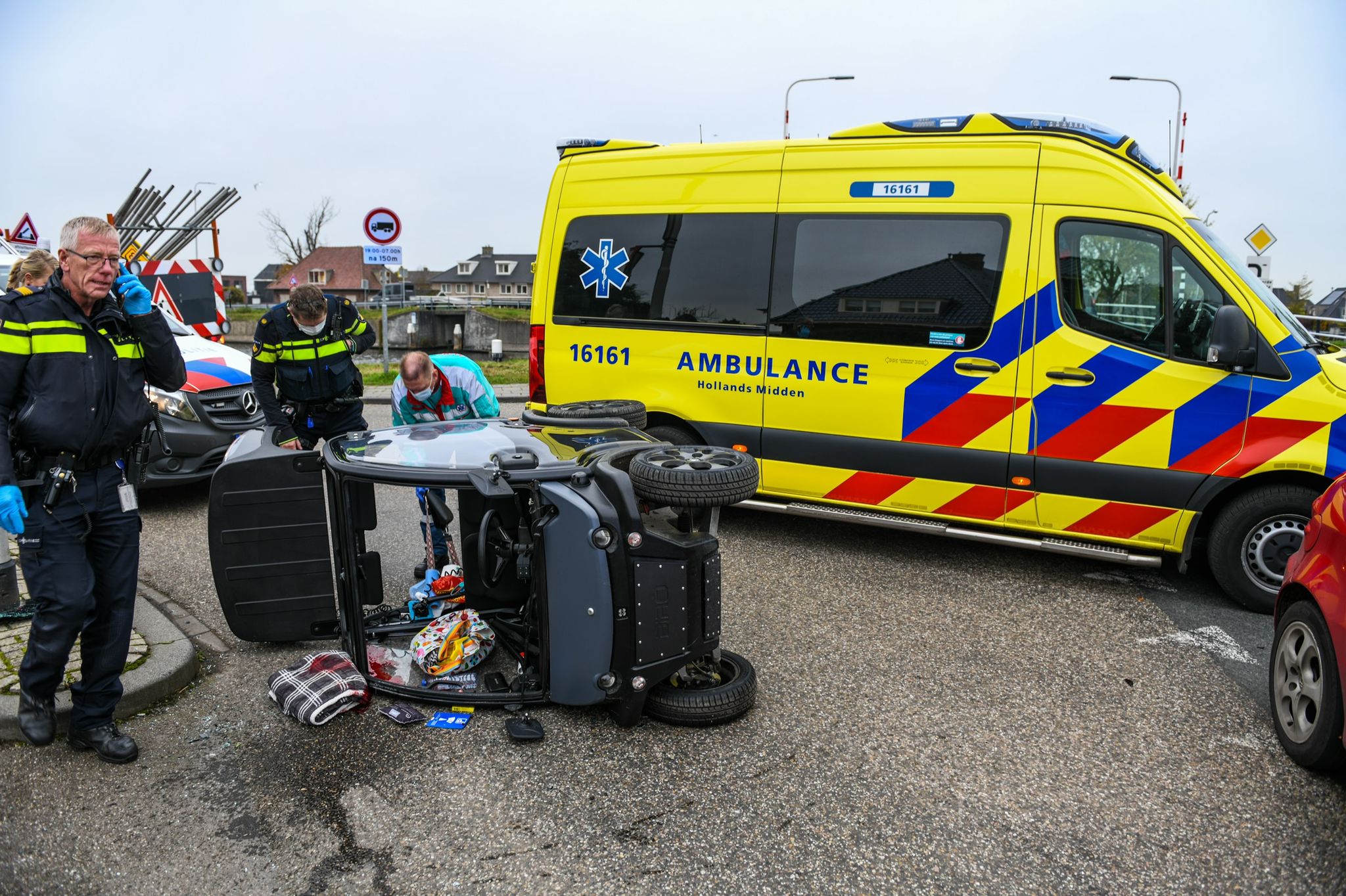 De bestuurster van een brommobiel is vanmiddag gewond geraakt bij een aanrijding met een auto in Papenveer (Ter Aar).